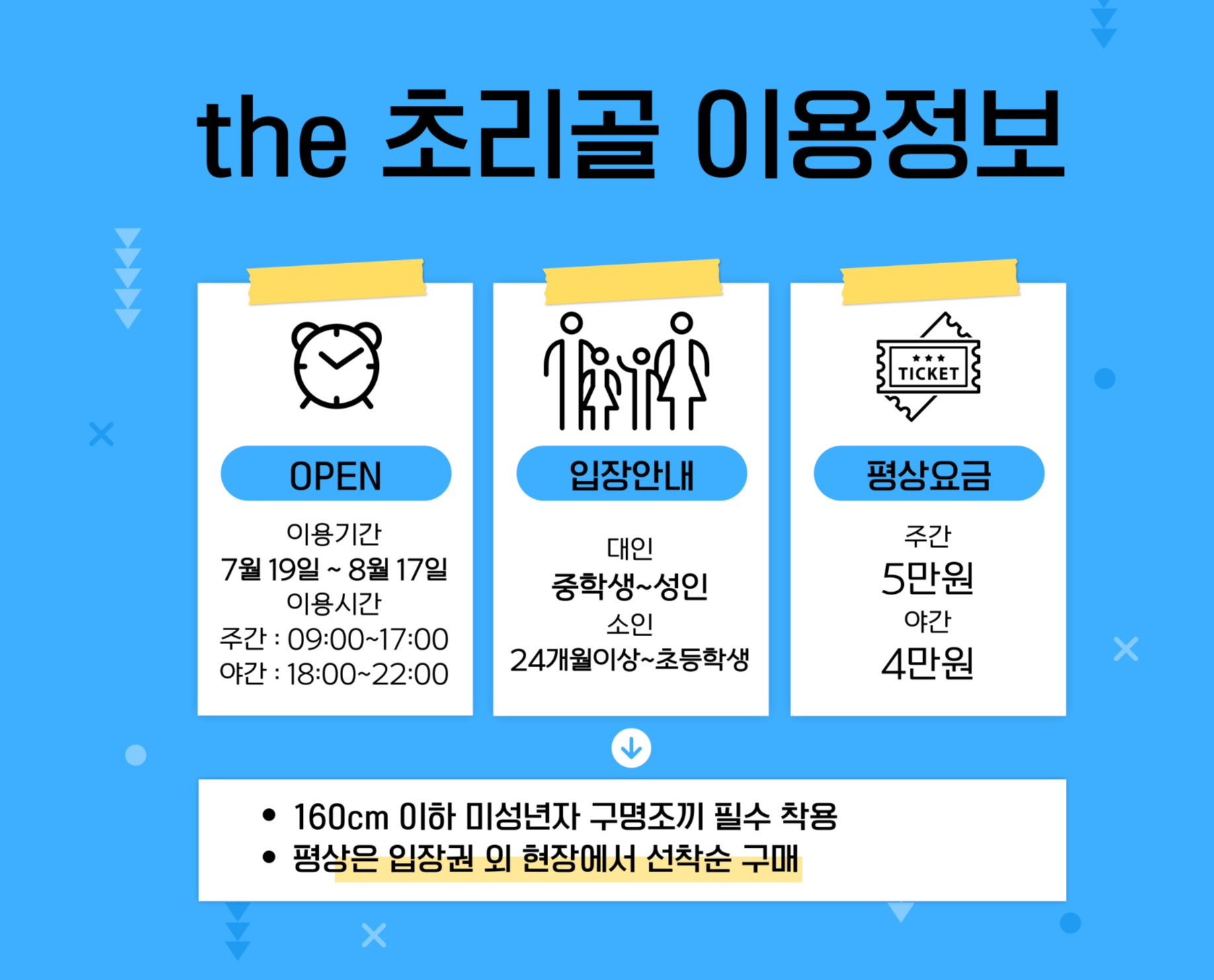 - 유아 동반 시 구명조끼 필수 (키 160cm 미만)
