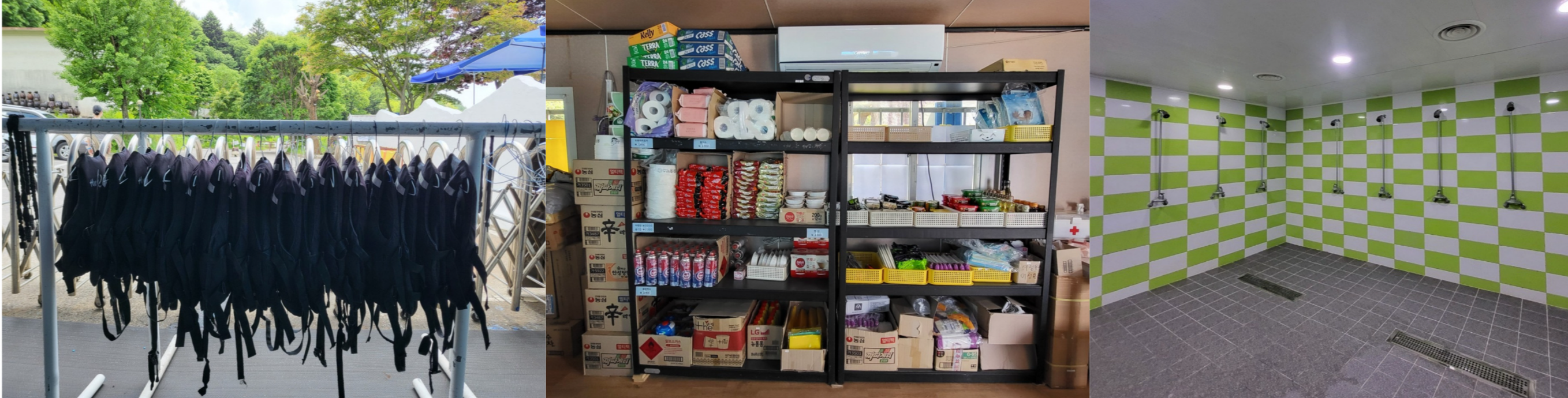 - 온수 샤워실, 간이매점, 음료와 간식 판매 존재.