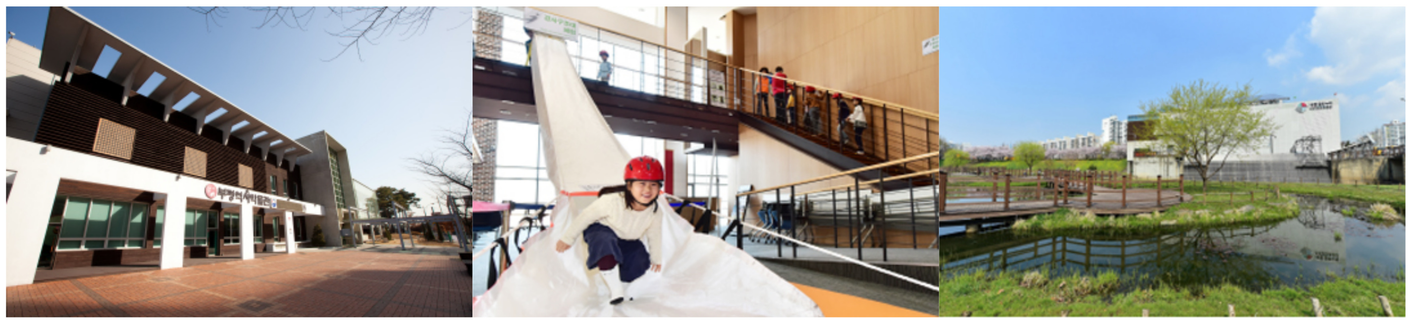 - 기후변화체험관: 굴포천에 위치한 생태 학습장으로 도심에서 지구 온난화 현상과 각종 환경 문제들을 즐기면서 배울 수 있는 공간