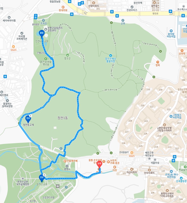 - 1코스 : 인천나비공원 > 장수산책로 > 원적산공원