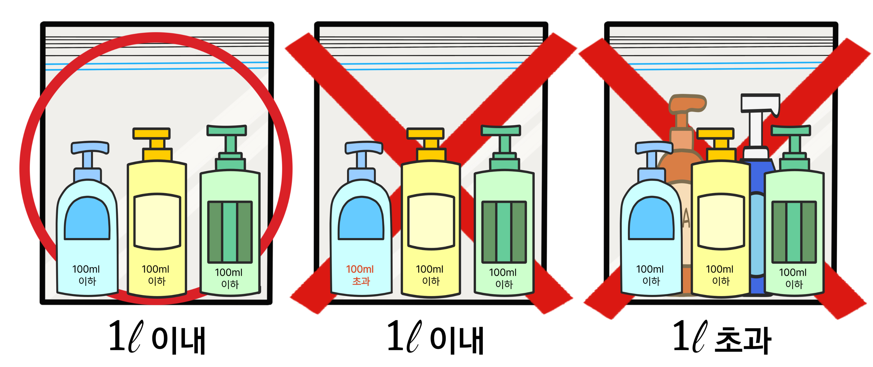 | 용량 | 1개당 100ml 이하 용기에 담긴 것만 가능 |
