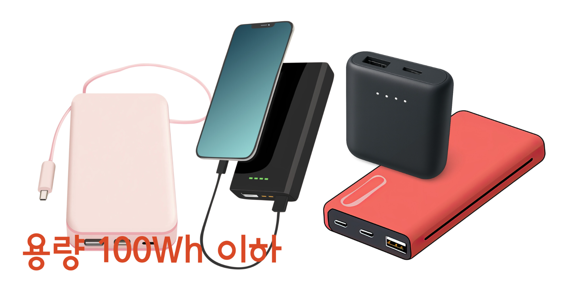 - 보조배터리 100Wh 이하 (최대 2~3개)