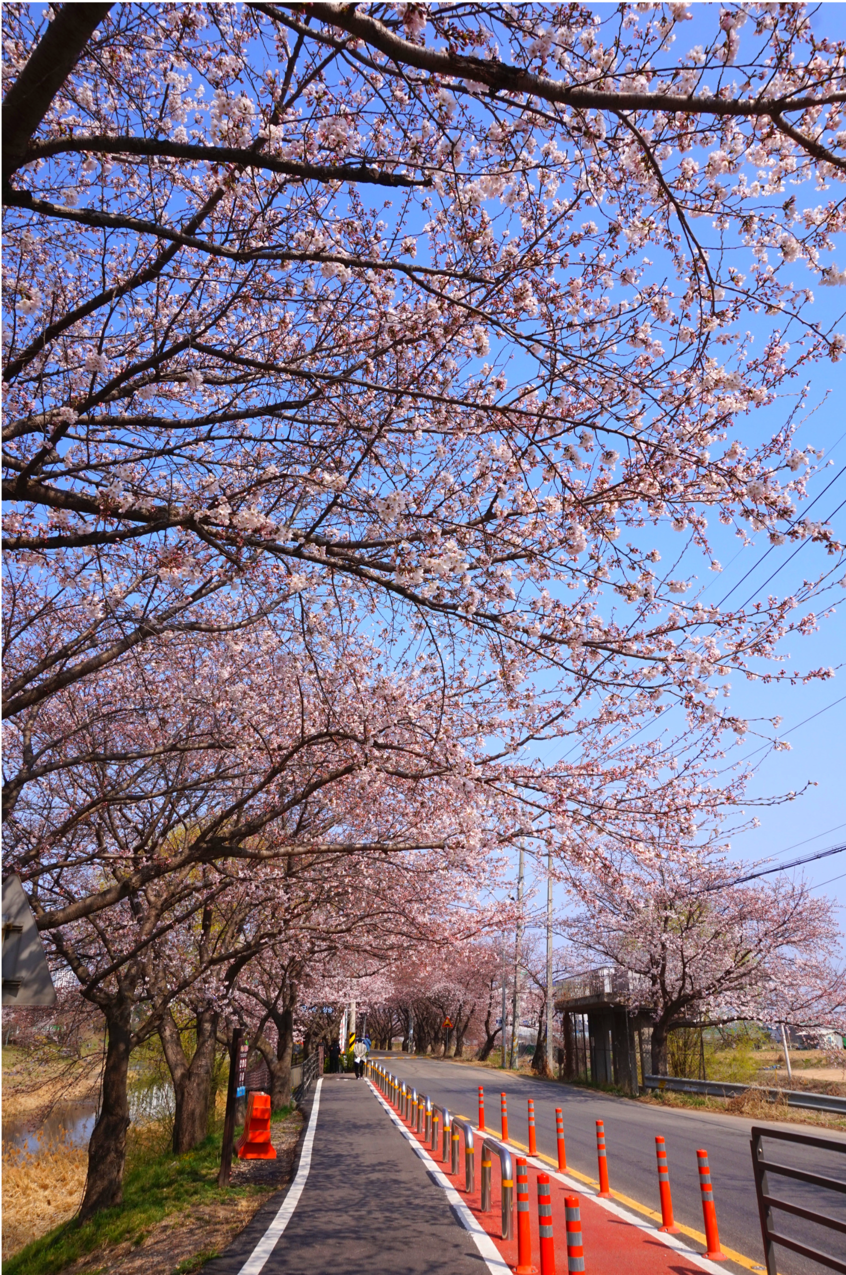 산책로 주변 주거지역에는 벚꽃이 만개해서 많이 기대를 했었는데요, 아쉽게도 계양천 산책로는 아직 만개하지는 않았습니다. 하지만 날이 따뜻해서 축제가 진행되는 11일과 12일에는 만개한 벚꽃을 볼 수 있을 것으로 예상됩니다. 2시간 정도 산책하면서 만개한 벚꽃도 보았고 실시간으로 벚꽃이 피어나는 느낌이었어요.