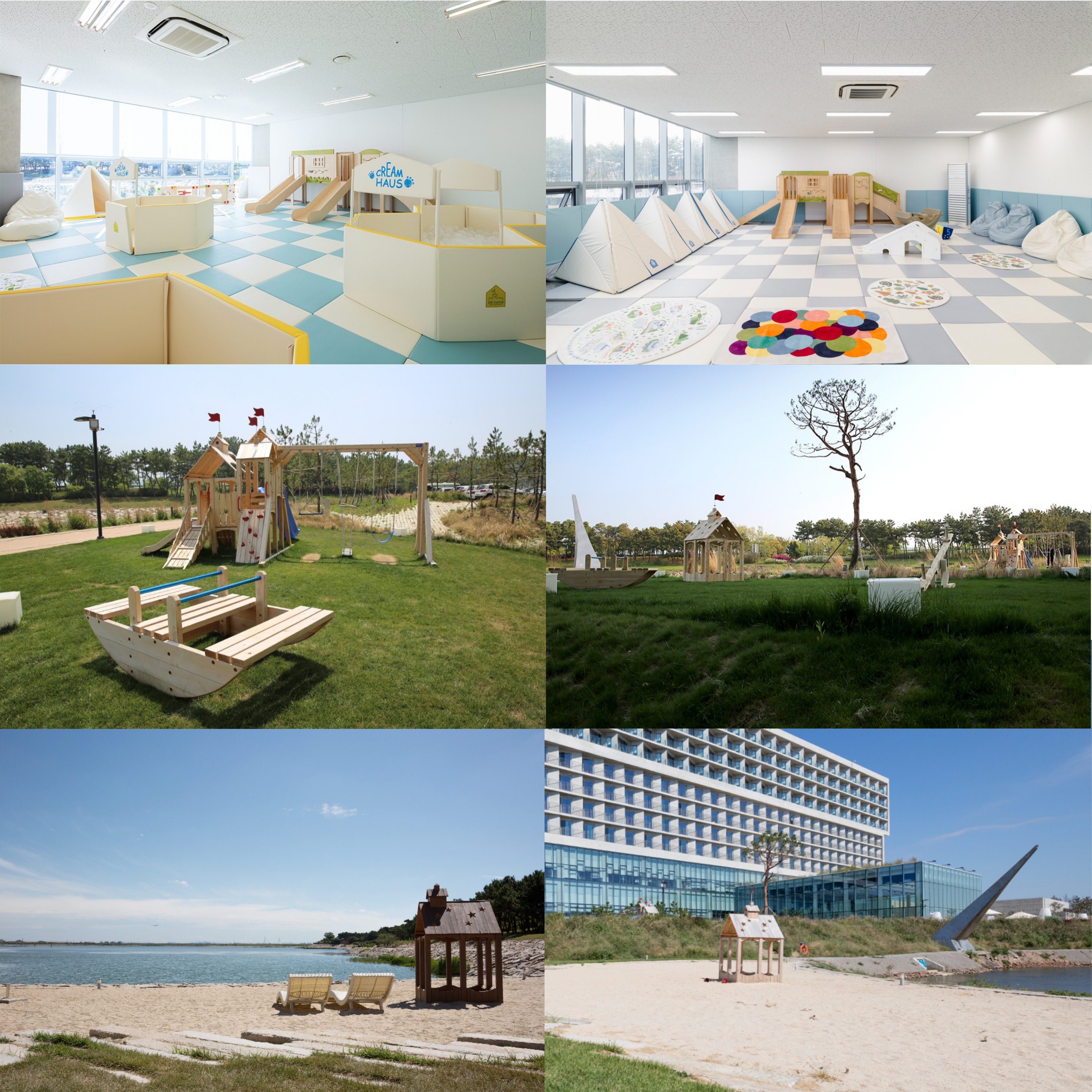 - 인도어 키즈존 : 크림하우스로 안전하게 즐길 수 있는 실내 놀이터