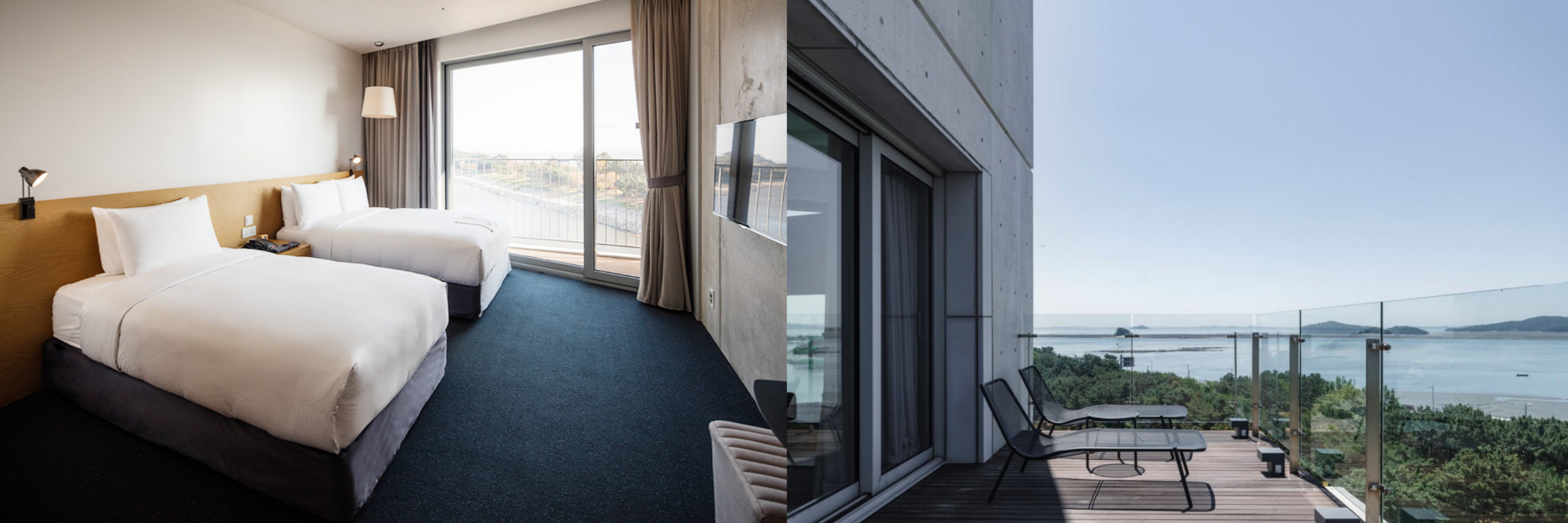 네스트 호텔의 가장 큰 매력은 모든 객실이 바다 혹은 공항 뷰를 자랑한다는 점입니다. 넓은 유리창으로 자연광이 가득 들어오며, 낮에는 잔잔한 바다 풍경을, 밤에는 활주로에 뜨고 내리는 비행기를 감상할 수 있어 도심 속에서 느낄 수 없는 감성을 자극합니다.