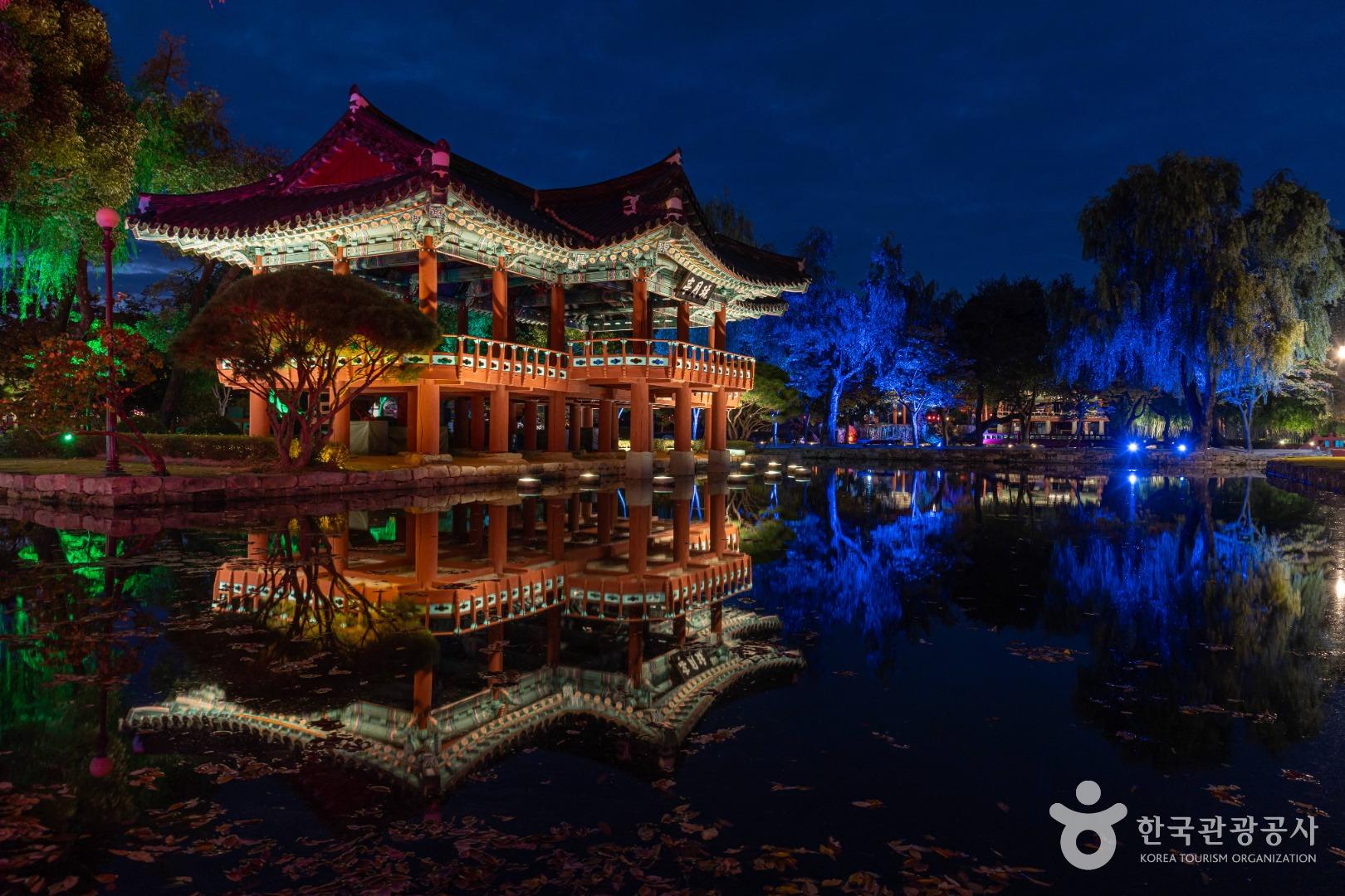 - 광한루와 완월정의 야경. 6시 이후에는 입장료가 무료여서 잠시 들러 야경을 감상하기에 좋다.