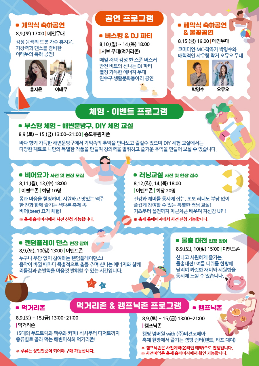 올해 제6회 송도해변축제는 단순한 물놀이 축제를 넘어서 도시 공간의 재해석, 문화 체험과 소셜 콘텐츠의 장으로 거듭났습니다.