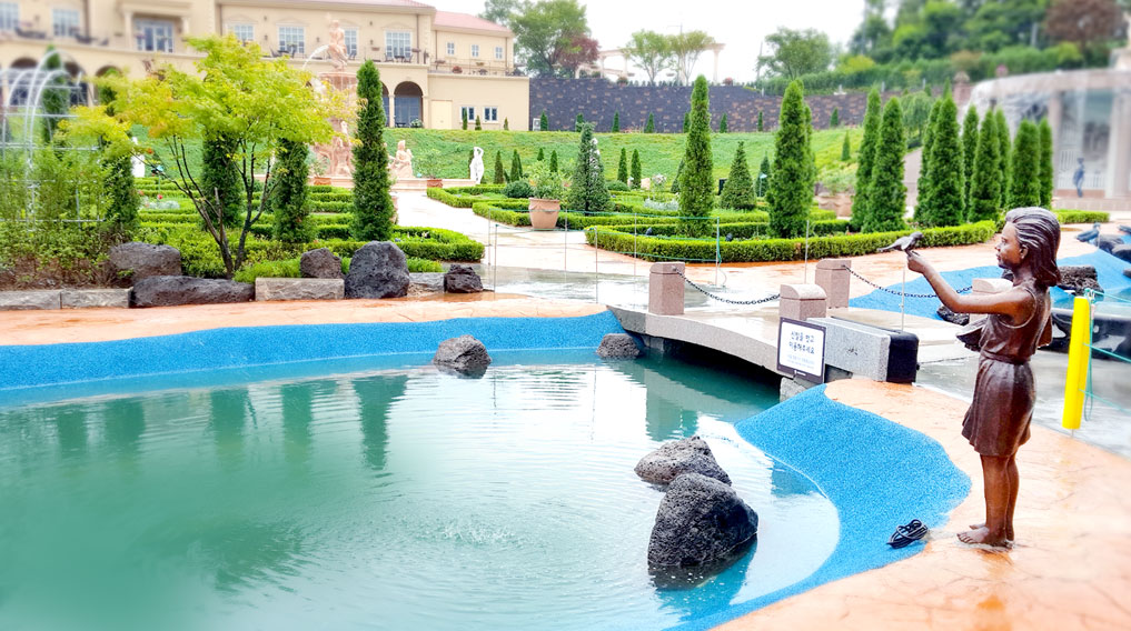 - 실개울 : 제우스벽천분수 앞쪽에 위치한 실개울은 한여름 무더위에도 시원하게 정원을 관람할 수 있는 쉼터