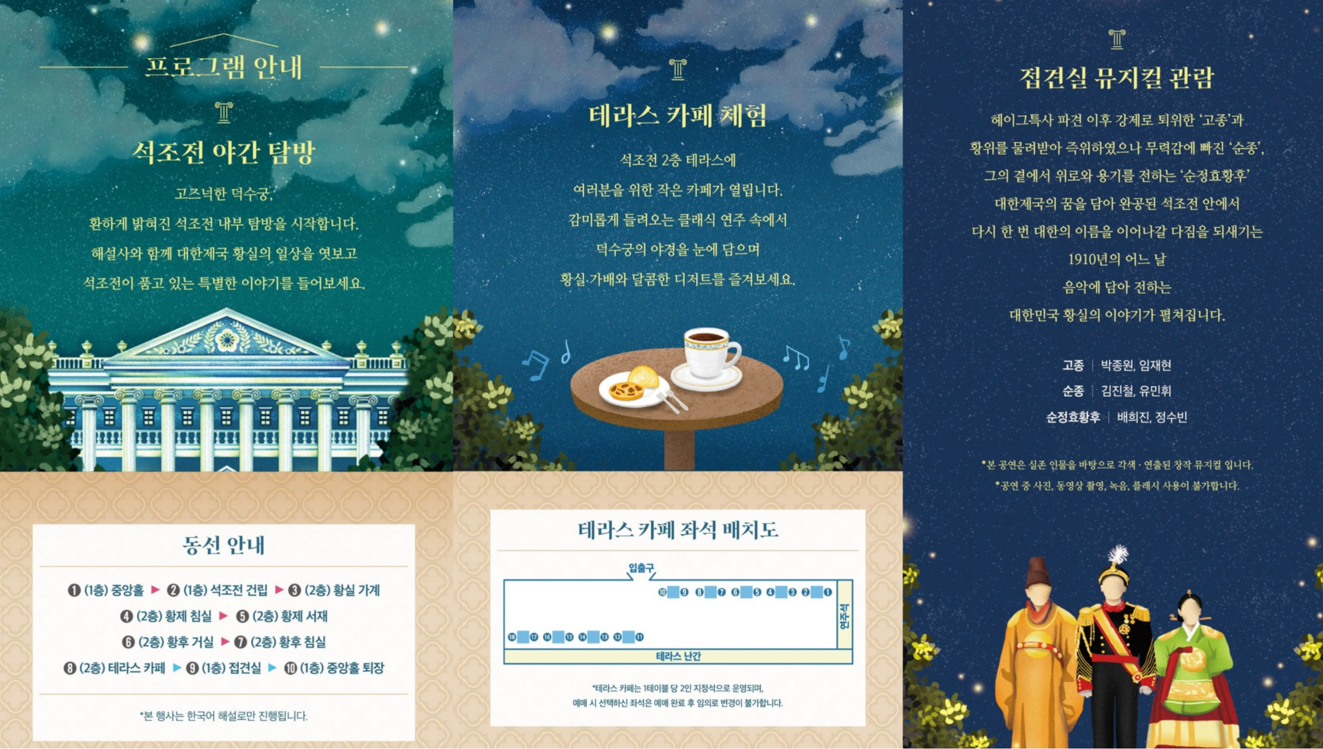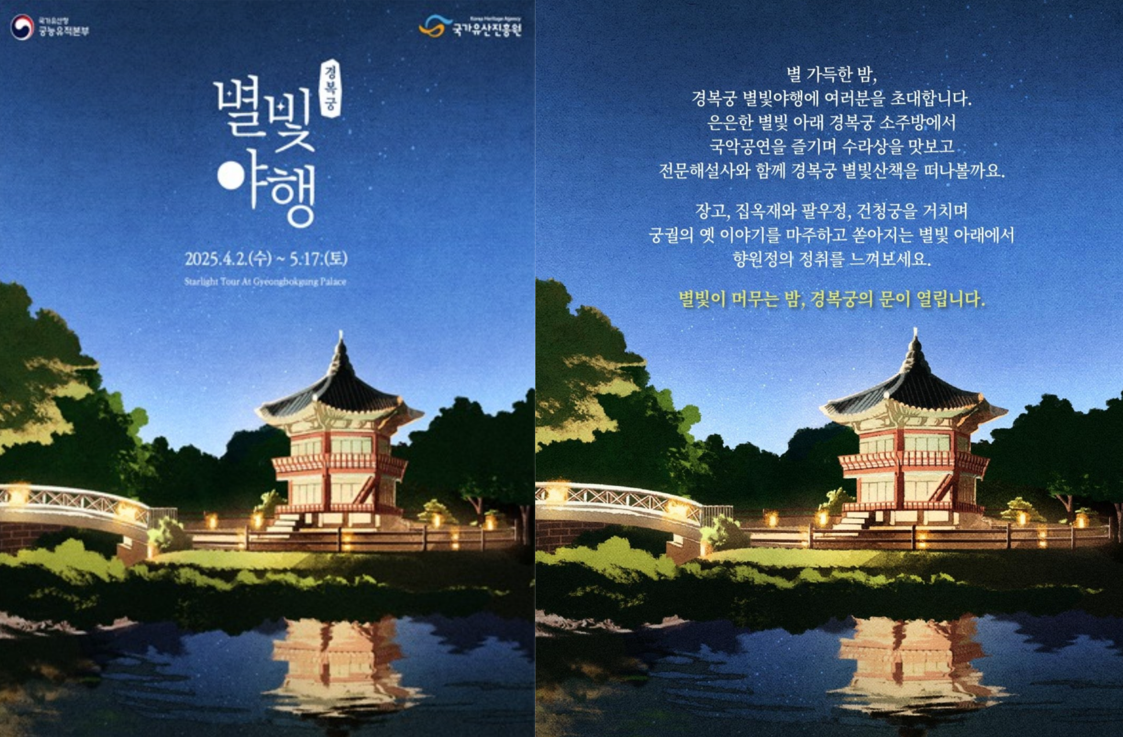덕수궁의 근대문화, 경복궁의 별빛 산책, 창덕궁의 전통 기행까지 각기 다른 매력을 느낄 수 있는 절호의 기회입니다.