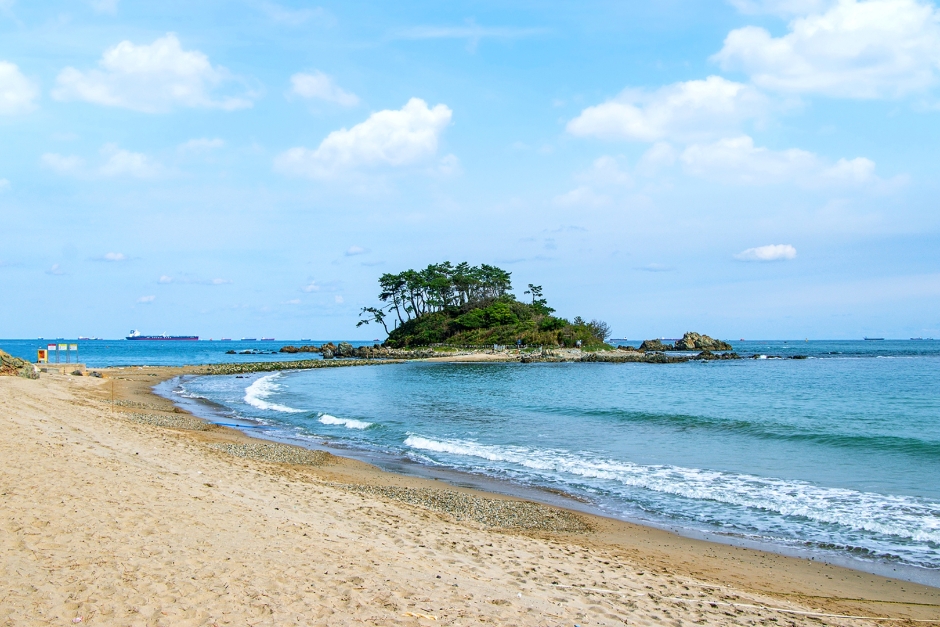 고운 백사장이 약 2km에 뻗쳐있으며, 수온이 적당해 피서지로서 알맞은 조건을 갖추고 있습니다. 백사장 뒤편에는 소나무숲이 짙은 그늘을 드리우고 있어 해수욕으로 거칠어진 호흡을 가다듬기에 더없이 좋은 휴식처를 제공해 줍니다.
